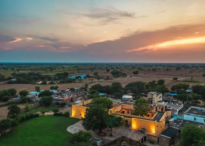 Zur Selbstverpflegung stehen eine Mikrowelle und ein Kühlschrank in einer Essecke und einem Essbereich im Freien zur Verfügung. Der nächstgelegene Flughafen ist Jaipur, der 45 km von der 6-Zimmer- Stayvista'S Jaipura Garh - Traditional Architecture, Vast Lawn, Expansive Courtyard & Fun Activities entfernt liegt.